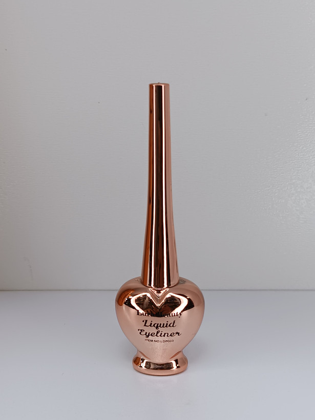 خط چشم مایع با شماره آیتم LOP003 در بستهبندی خاص و چشمنواز عرضه شده است. طراحی قلبیشکل پایه و رنگ رزگلد متالیک، آن را به گزینهای جذاب برای میز آرایش یا هدیه تبدیل کرده است. این محصول احتمالاً از برندهای اقتصادی با تمرکز بر زیبایی بصری و کاربرد آسان است.
